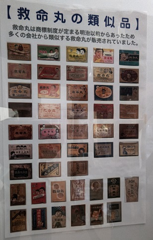 2階へ行く階段の途中に、宇津救命丸の類似品を集めた写真があります。
