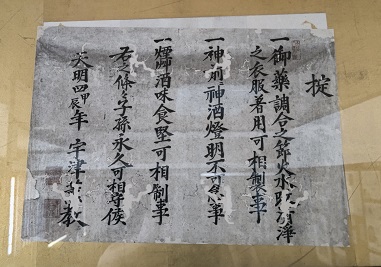 左にある東照大権現(徳川家康)の位牌は、宇津薬師堂の補修の際天井裏にあ