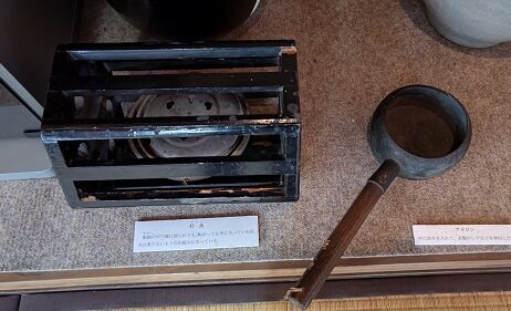 むかし使っていた生活道具もいくつかあります。左は炭を入れるアンカで、