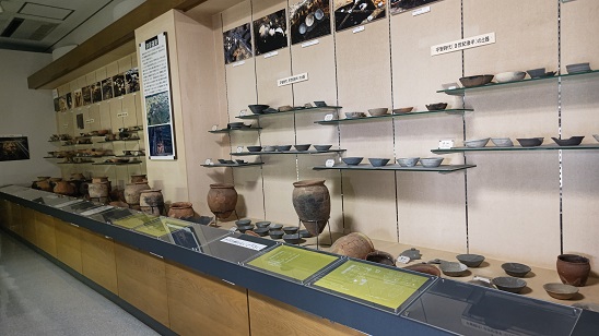 町内で出土した多くの土器などが展示され、古代の住居が再現されています。