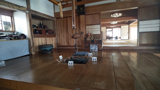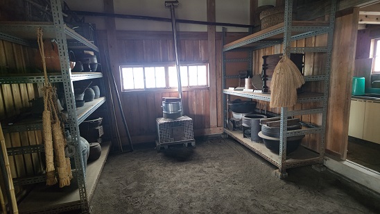 明治時代の豪農の家を再現し、家の中には土間があり、馬小屋、かまど、いろり、