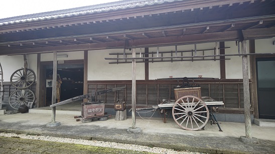 豪農の屋敷にあったと思われる、かなり大きな長屋門が再現され、中には昔の農具